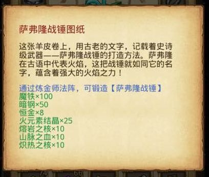 不思议迷宫萨弗隆战锤怎么做 萨弗隆战锤制作攻略