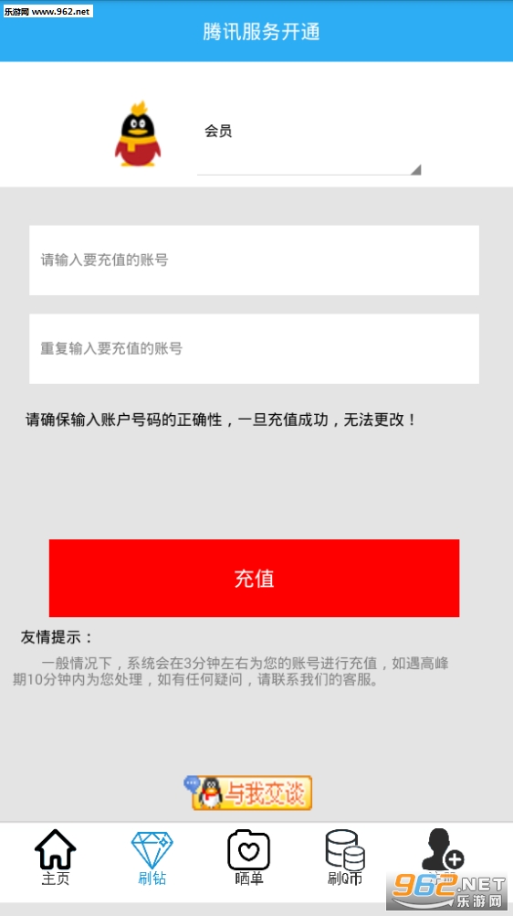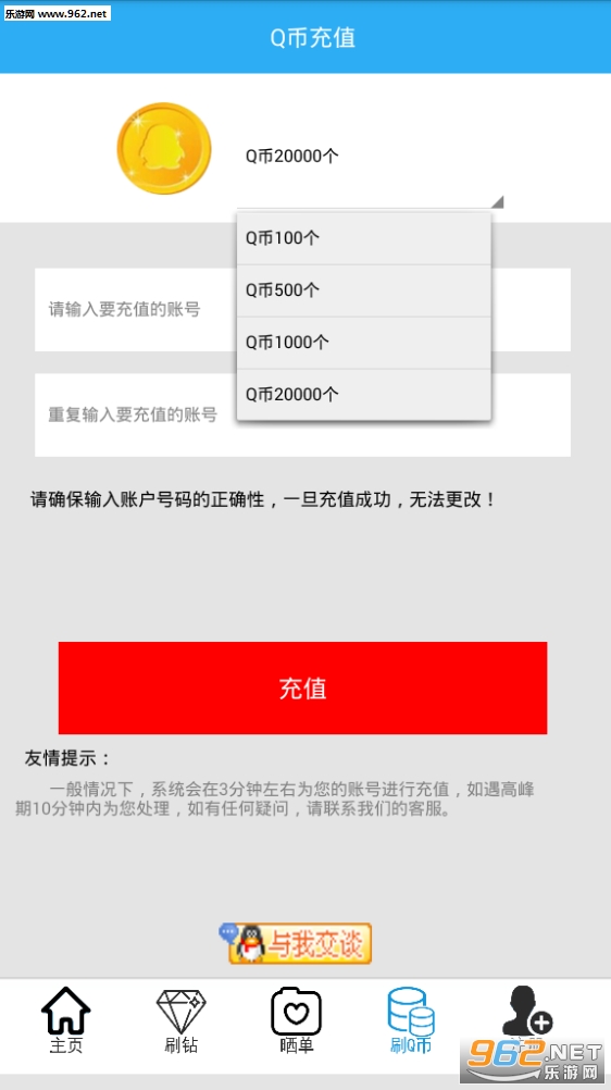 【使用方法】1.打开软件,选择你要刷多少Q币,或者那个QQ业务